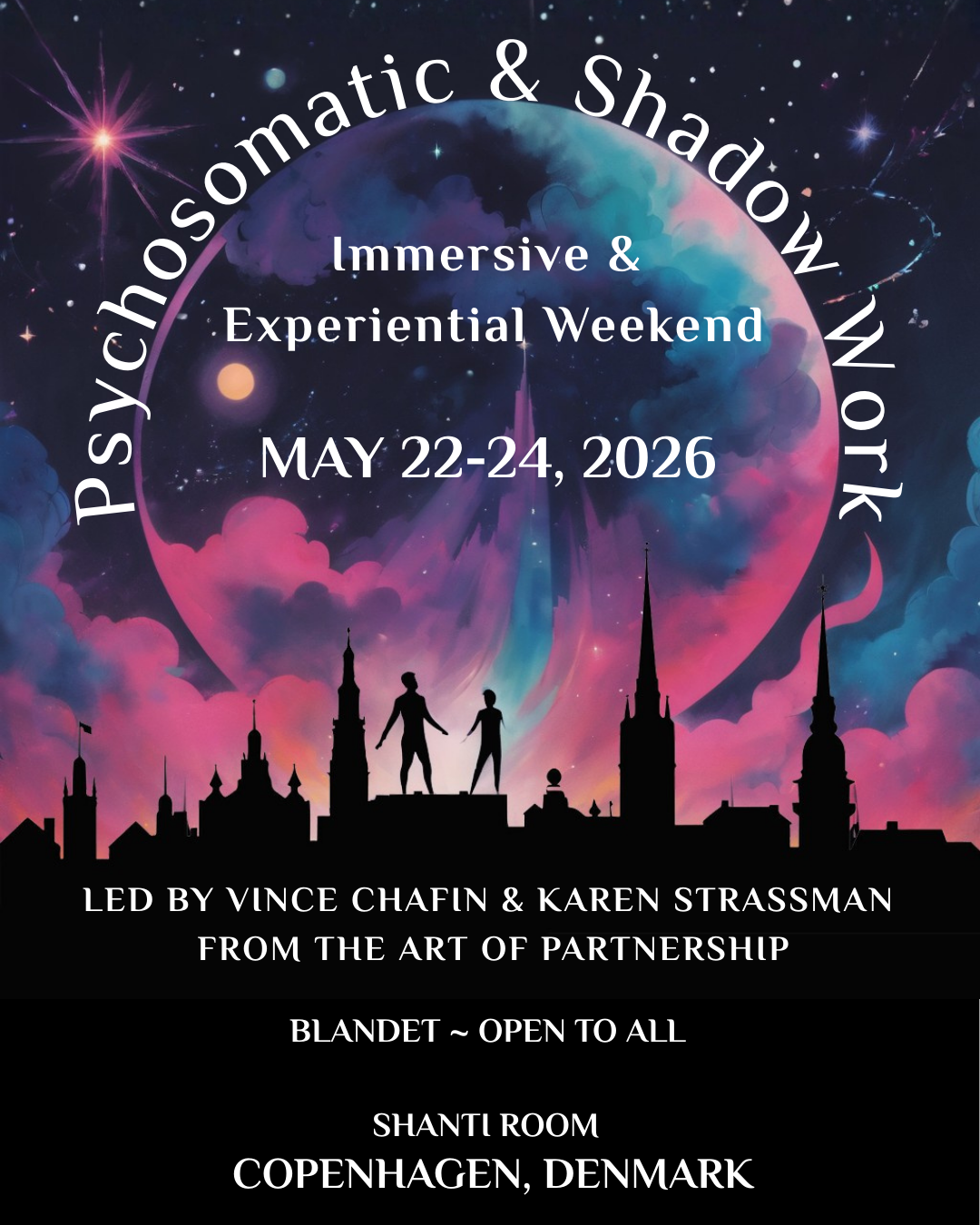 Join us for a 2-day immersive and experiential weekend guided by Vince Chafin and Karen Strassman, where participants will have the opportunity to experience and work with powerfully ancient and modern methods of psychodrama, shadow work, Gestalt and more to call in more love, presence and possibility in all your relationships.